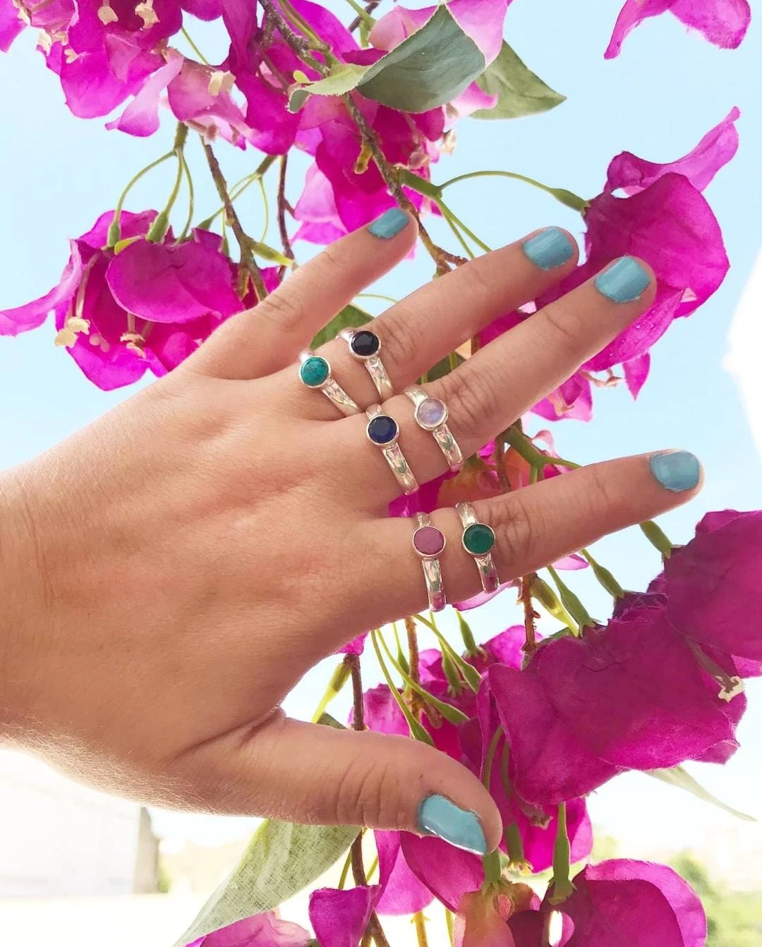 - 6 piedras* a elegir: Turquesa, Piedra luna, Onix, Onix Verde, Espinela Roja (color Rubí)y Espinela Azul (color Zafiro).