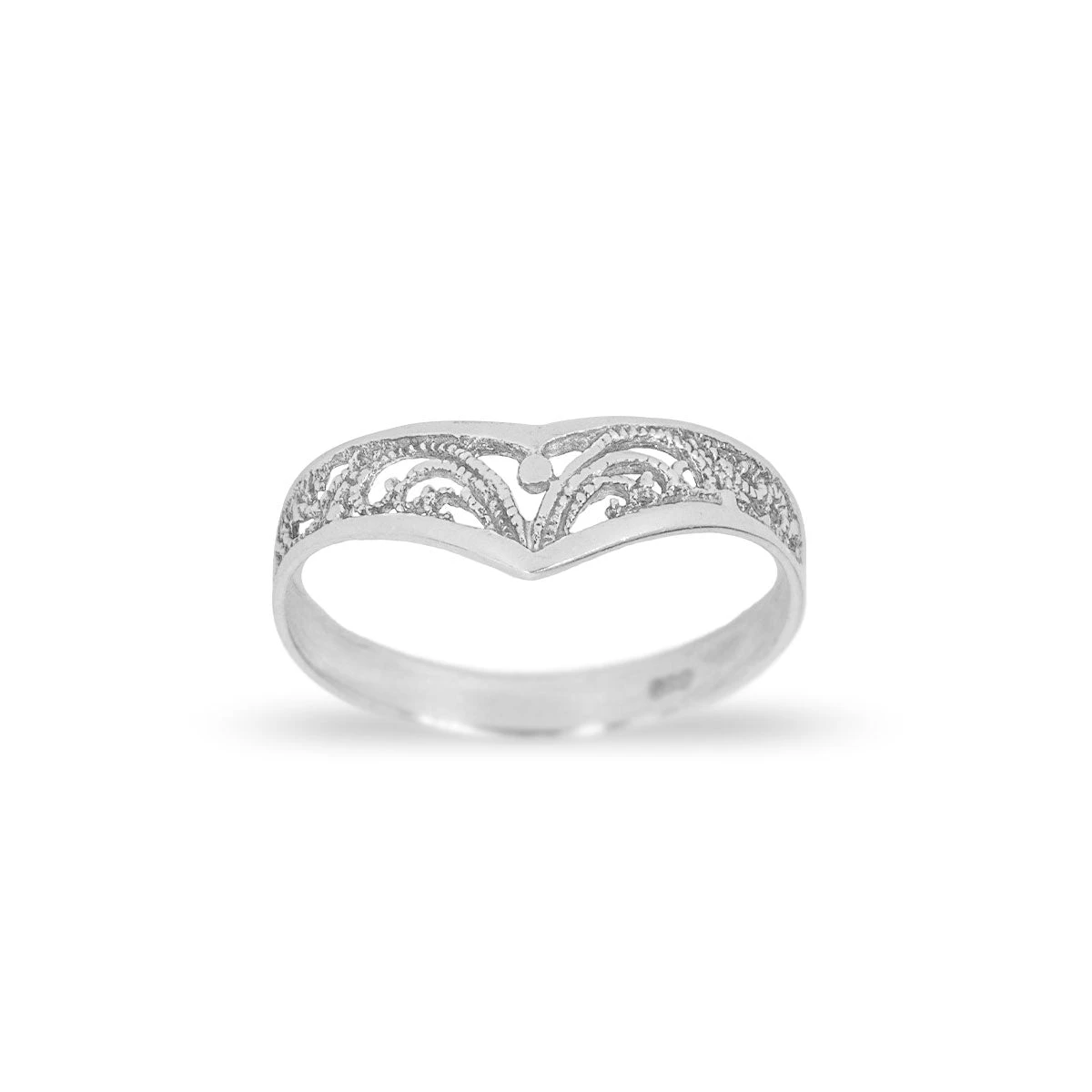 Anillo de plata con forma V labrada.