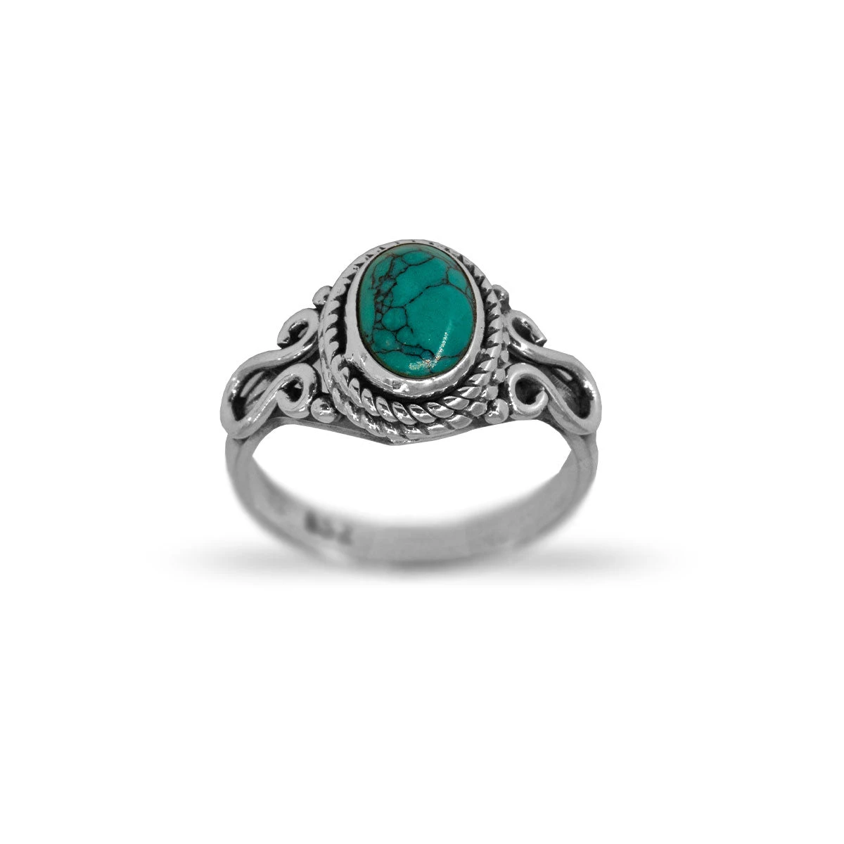 Anillo de plata con filigranas hechas a mano. Disponible en varias piedras: Howlita, Esmeralda, Aguamarina, Zafiro, Turquesa y Rubí.