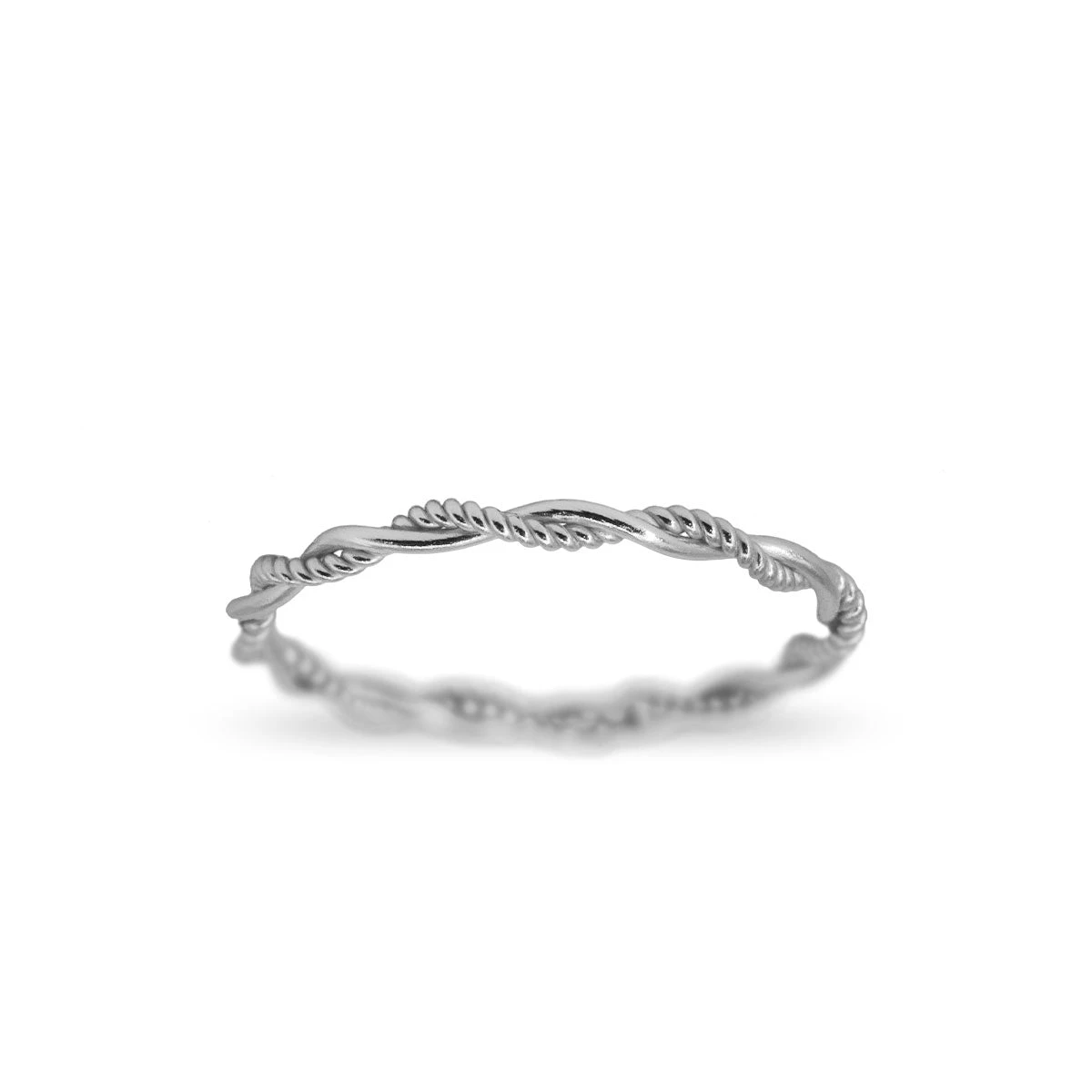 Anillo de Plata con un ligero trenzado con diferentes texturas, ideal para el día a día y combinar con distintos anillos.