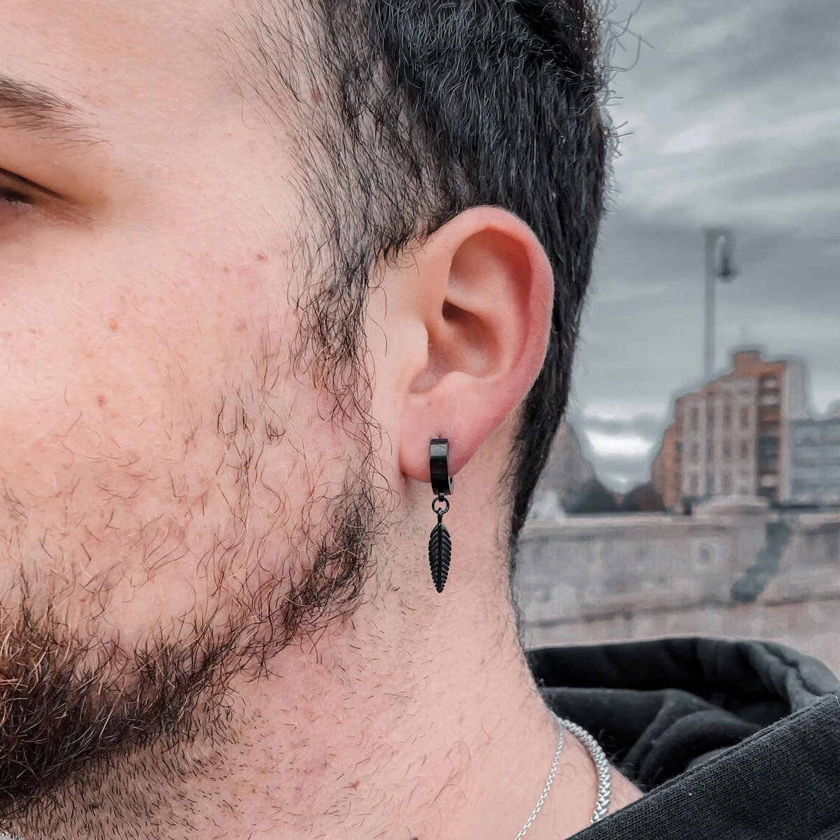 Aro de Acero quirúrgico antialérgico, acompañado de una pluma negra. Sutil y perfecto para combinar con cualquier tipo de joya y outfits.