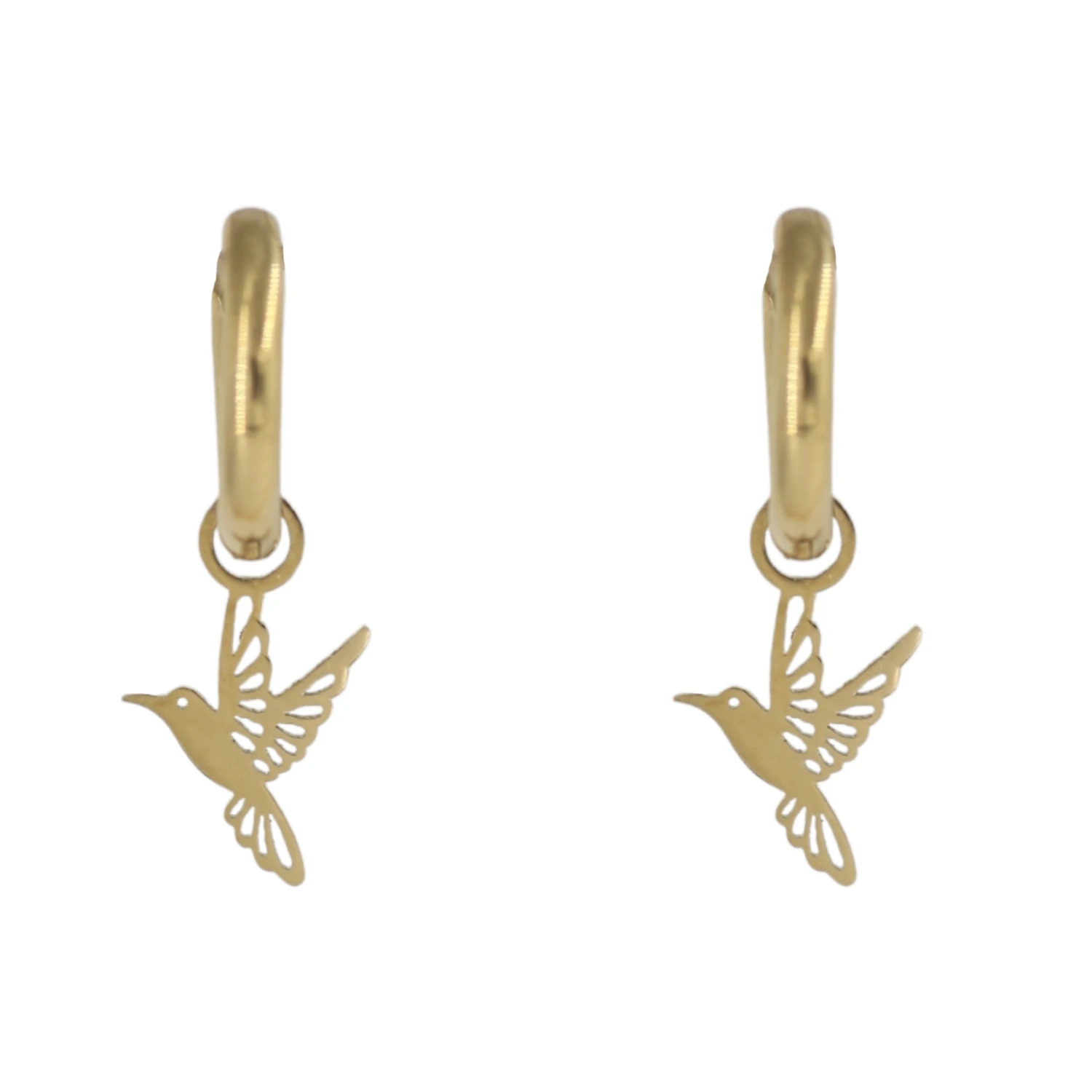 Aros y Charm de colibrí fabricado en acero inoxidable.