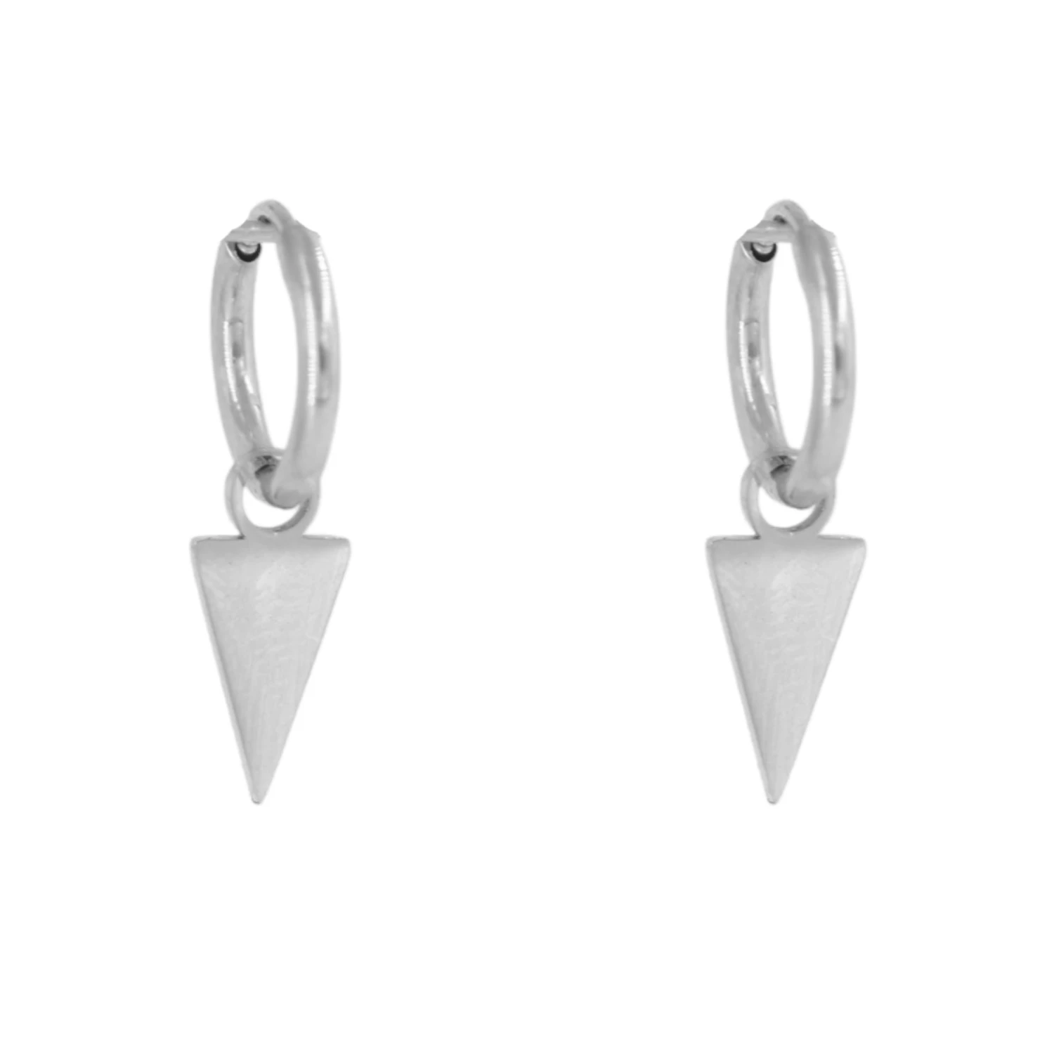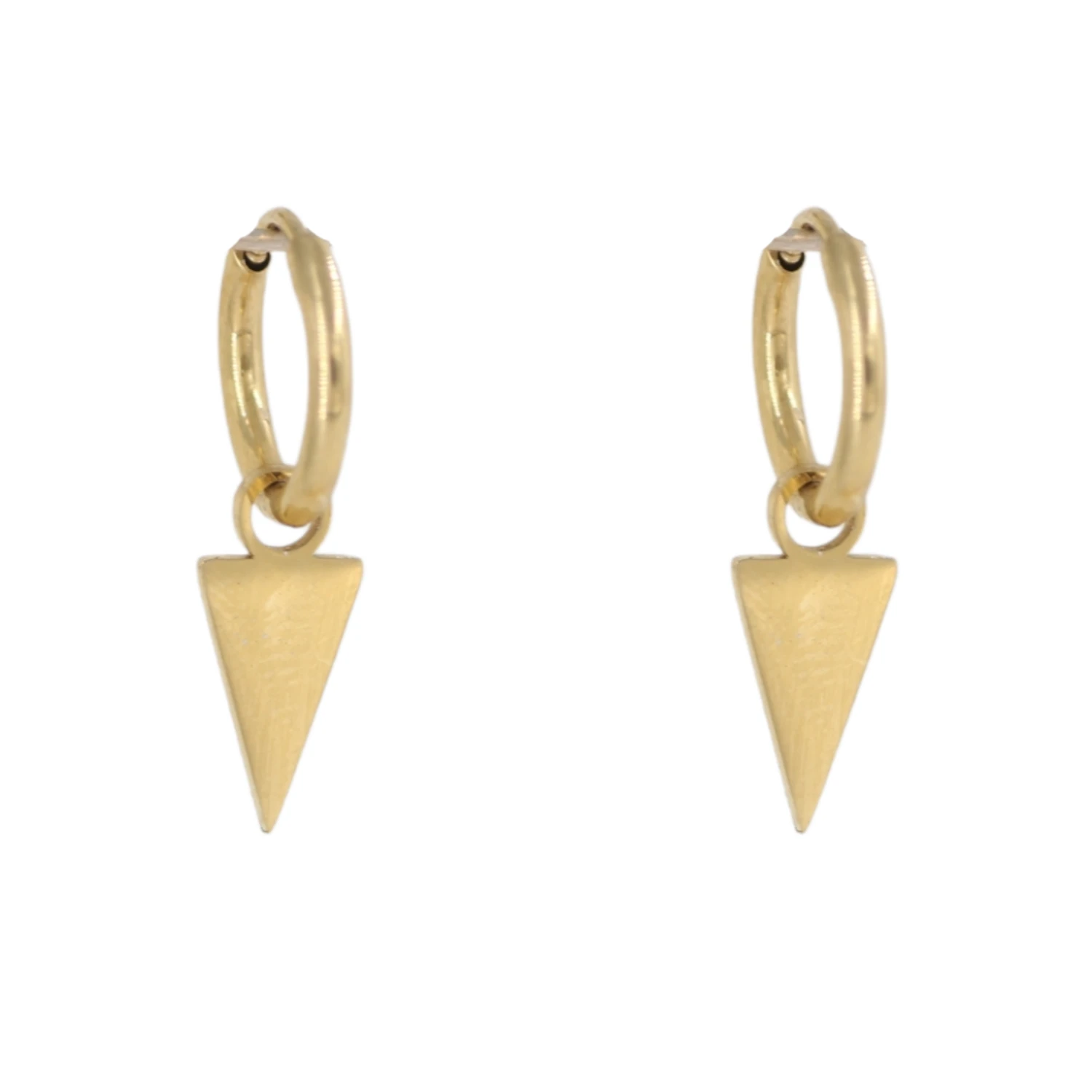 Pendientes con forma de aros con colgante de triangulo. Nuestro clásico ahora reimaginado con cierre de click, el más cómodo y fácil usar.