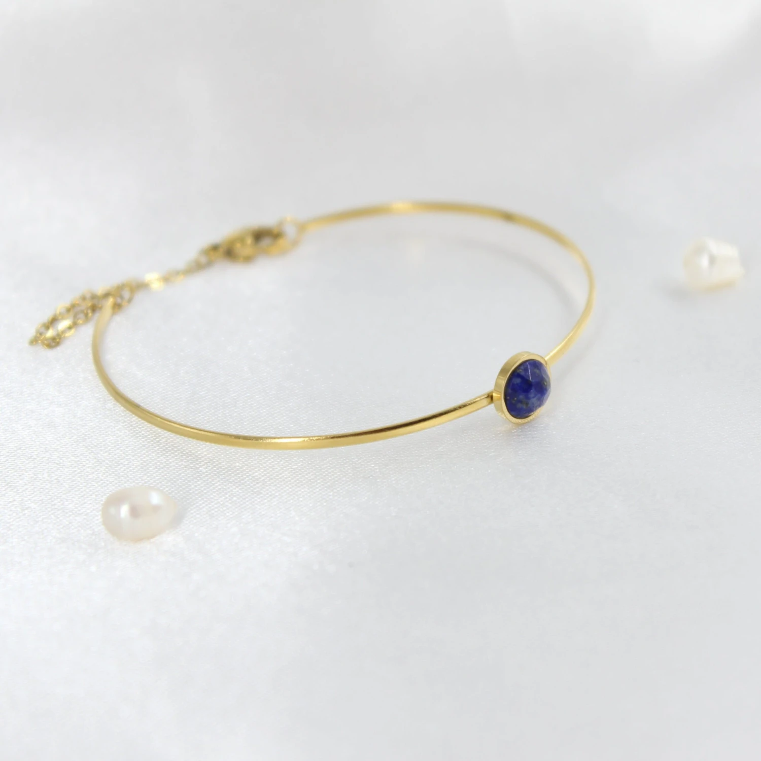 Brazalete rígido con piedra natural de Lapislazuli