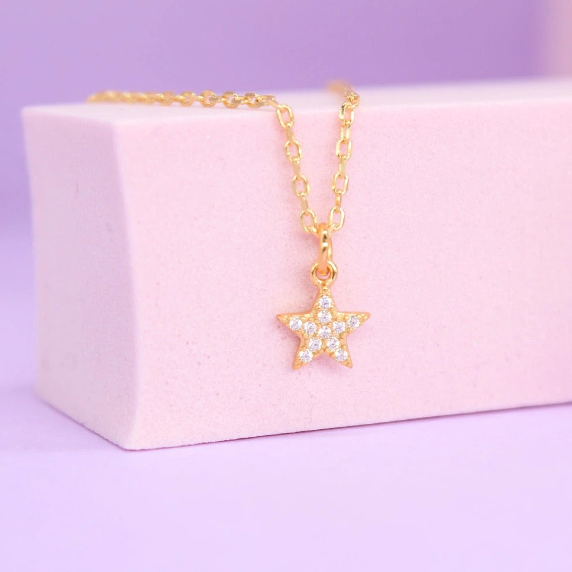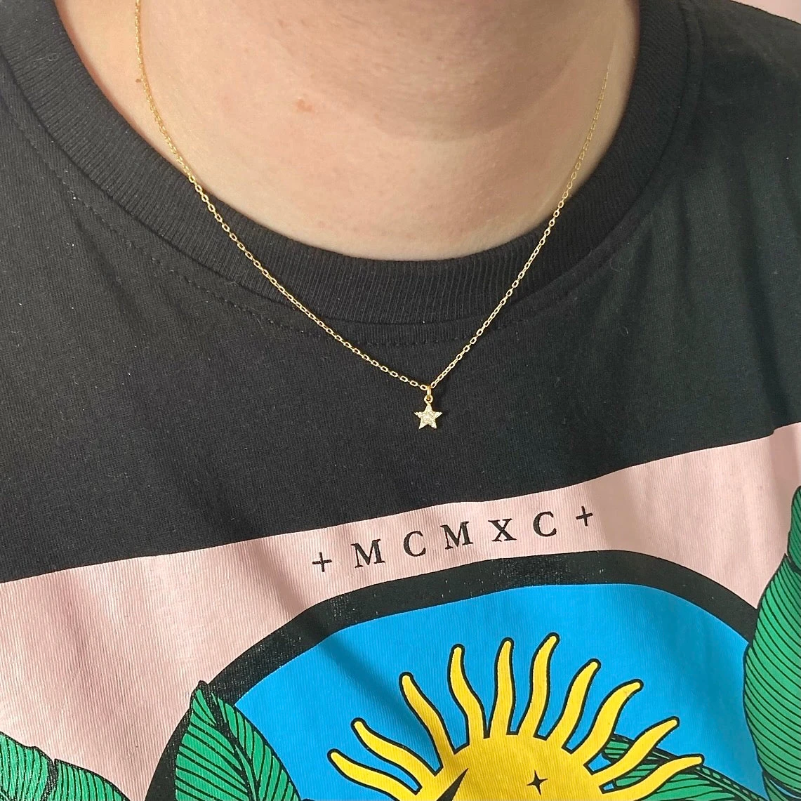 Collar de Plata de ley y Plata de ley bañada en oro con charm de estrella con circonitas