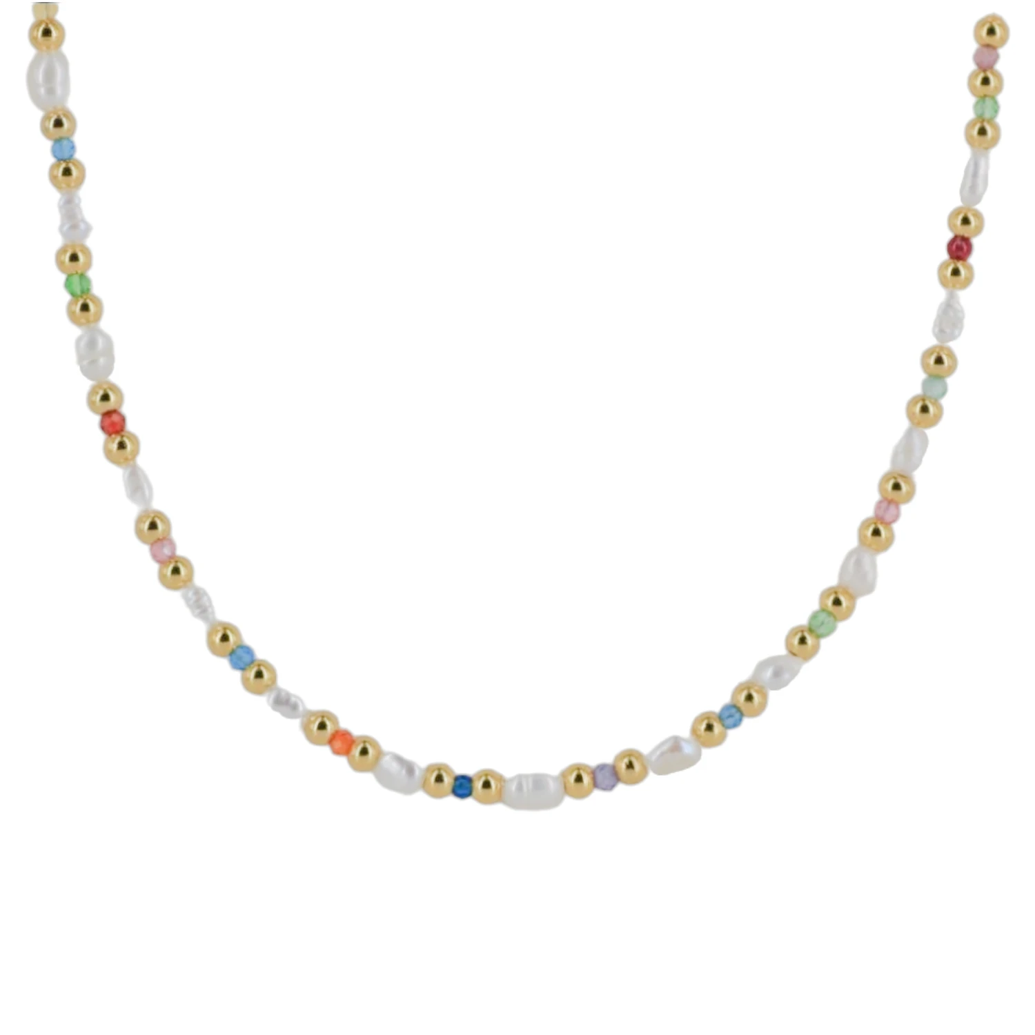 Collar de bolitas hecho a mano con perlas naturales , cristales y bolitas de acero dorado en hilo de acero por lo que es resistente