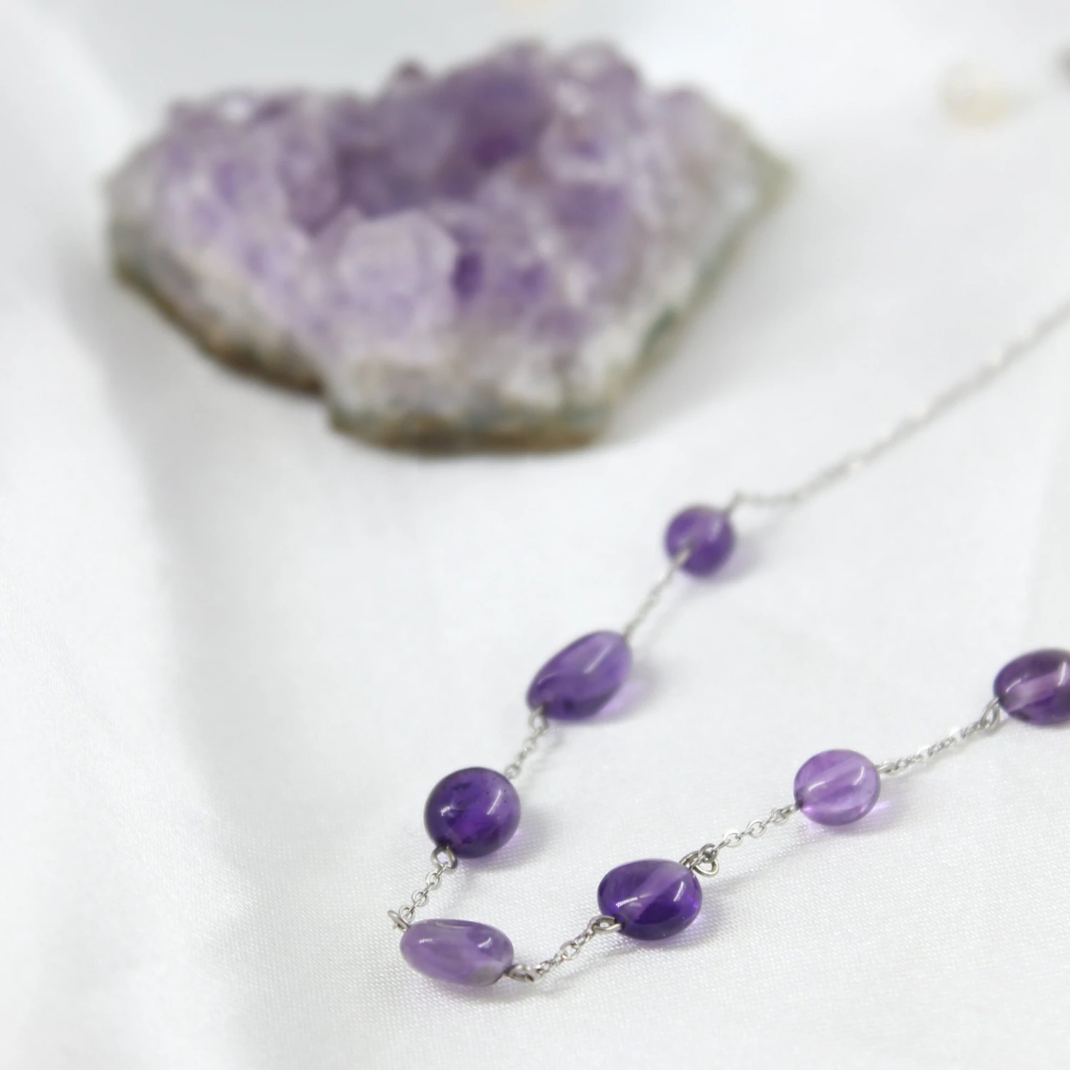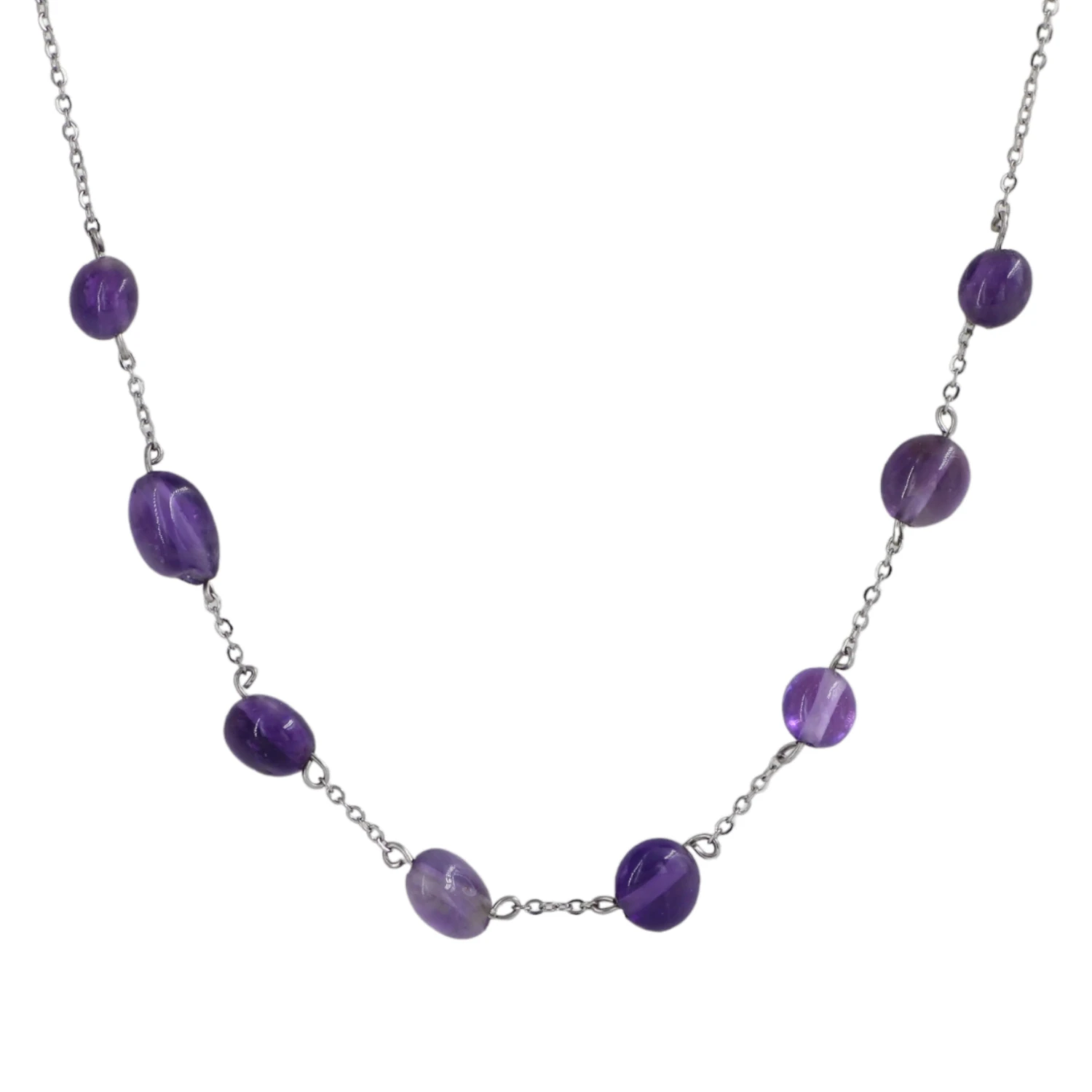 Collar de acero con piedra natural Amatistas y cadena de eslabones. Hecho a mano diseño exclusivo