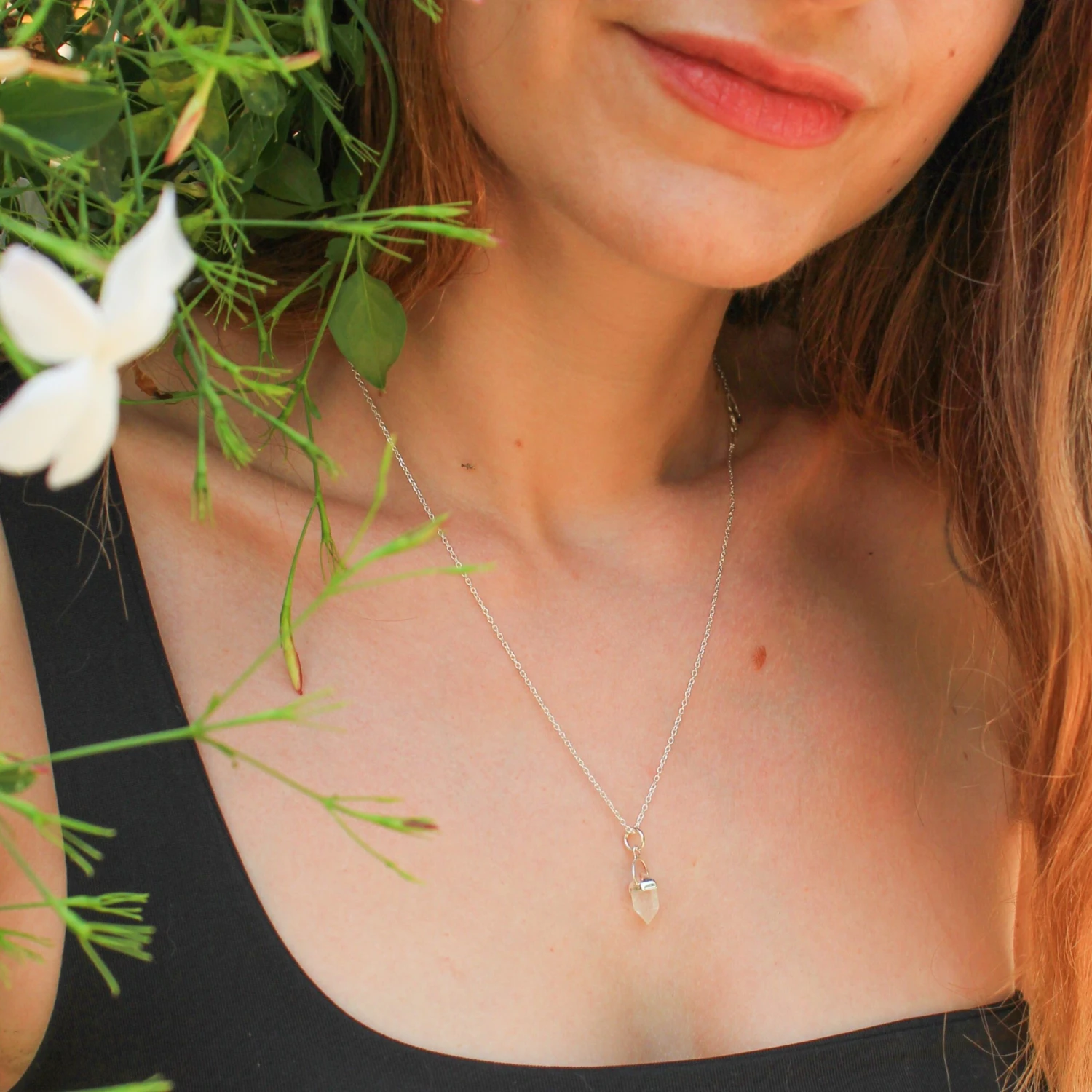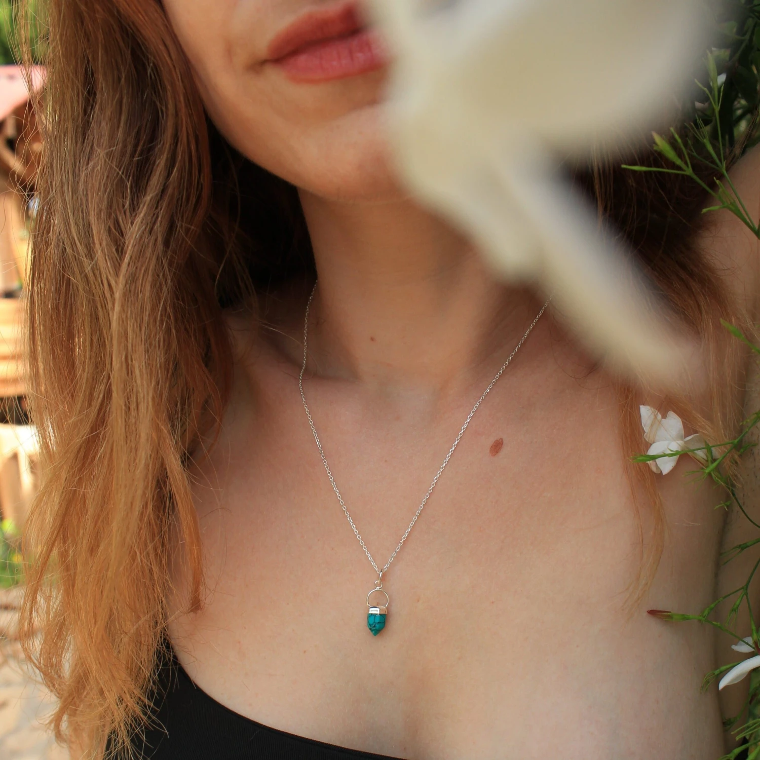 - Collar de Plata 925 con forma de prisma con la que podrás tener 2 en 1, ese collar que quieres que te aporte lo que necesitas con el valor añadido de poder disfrutar de un péndulo de Cuarzo Blanco, Amatista o Turquesa