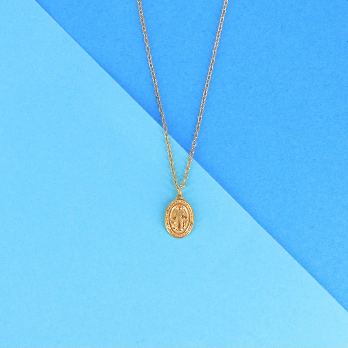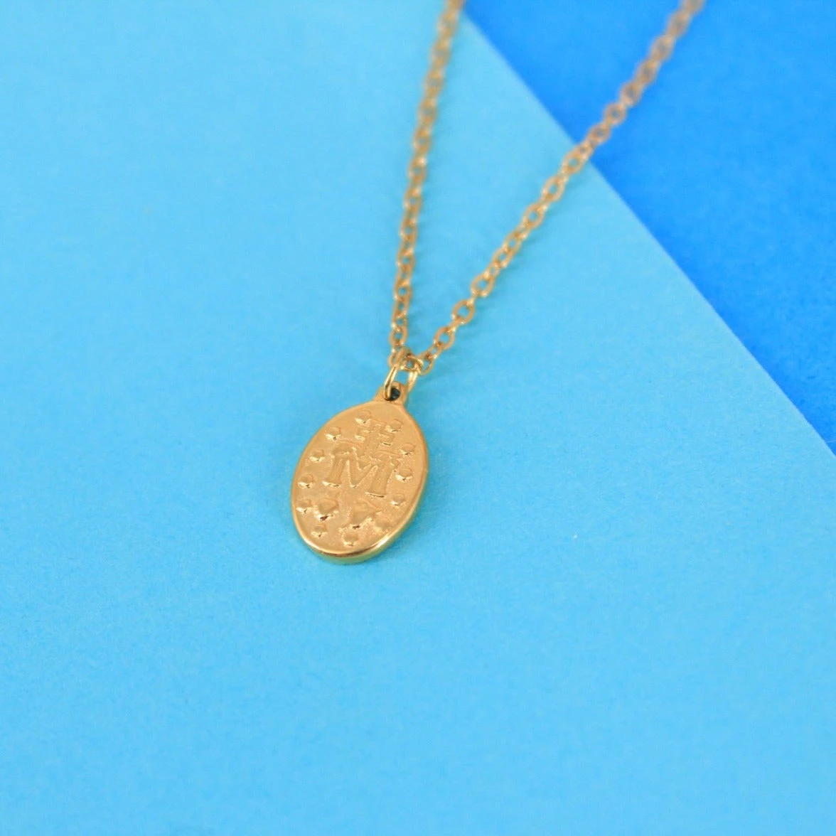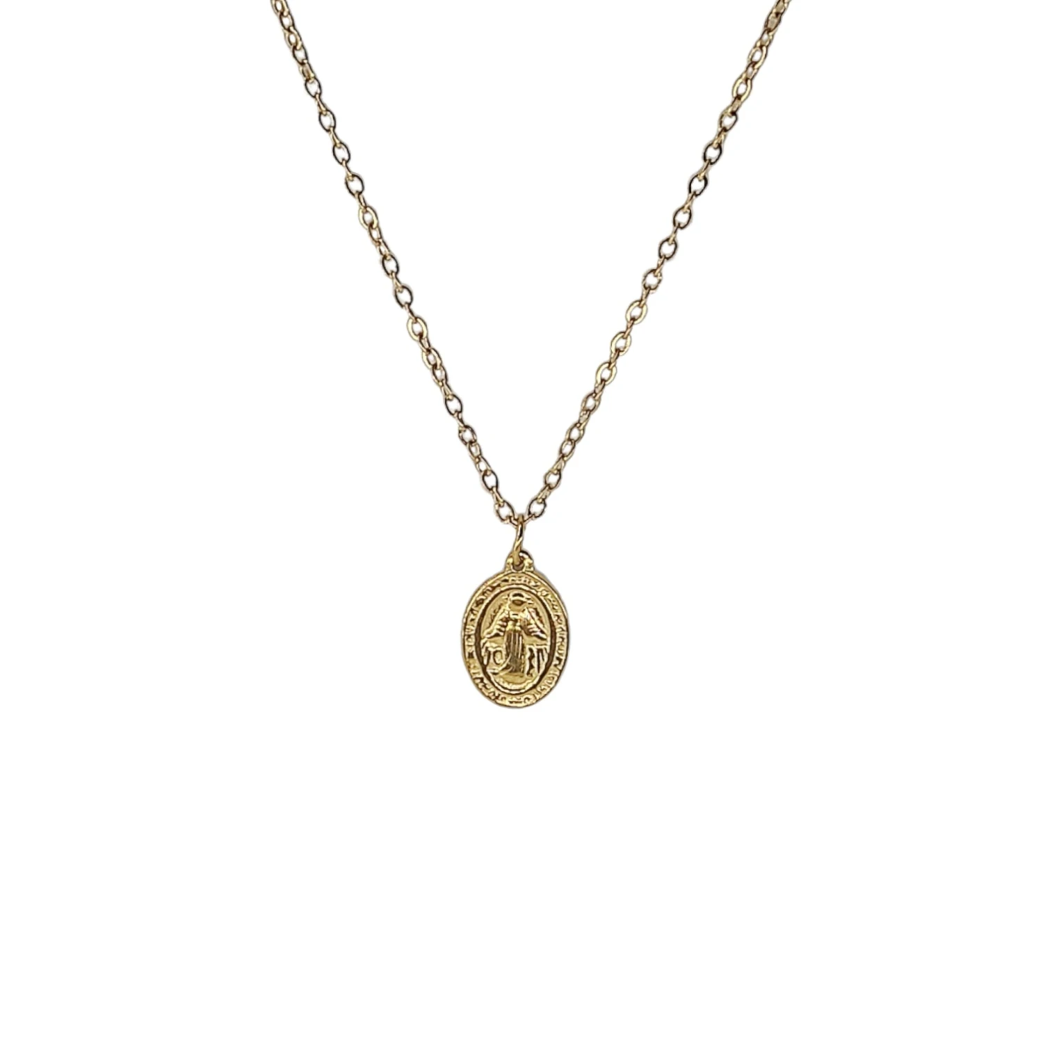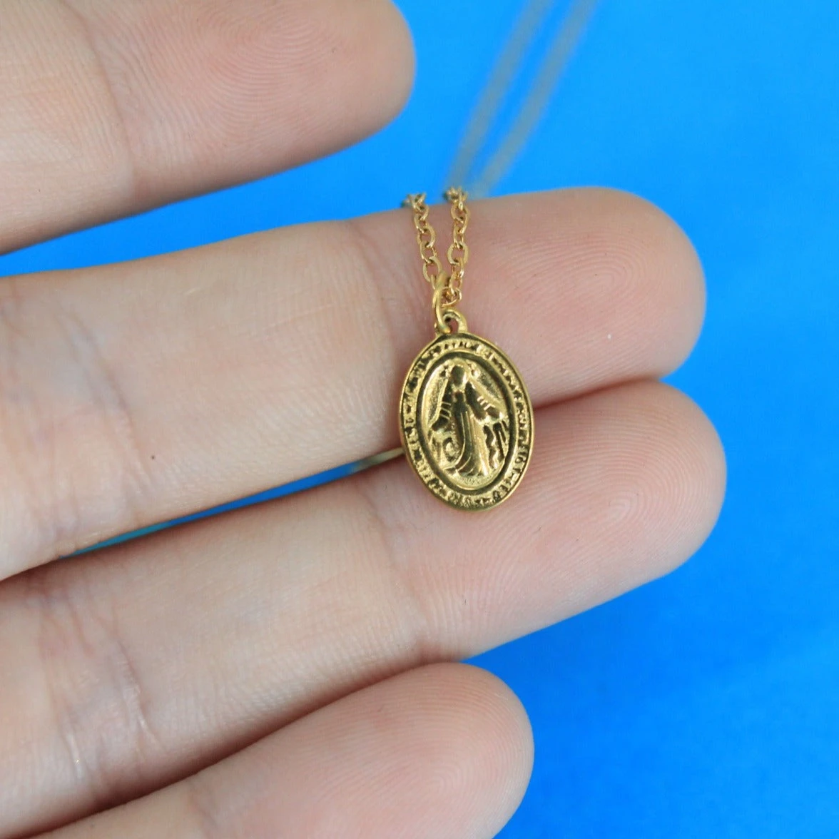 Collar de acero con el colgante de la virgen de la milagrosa y cadena eslabones.
