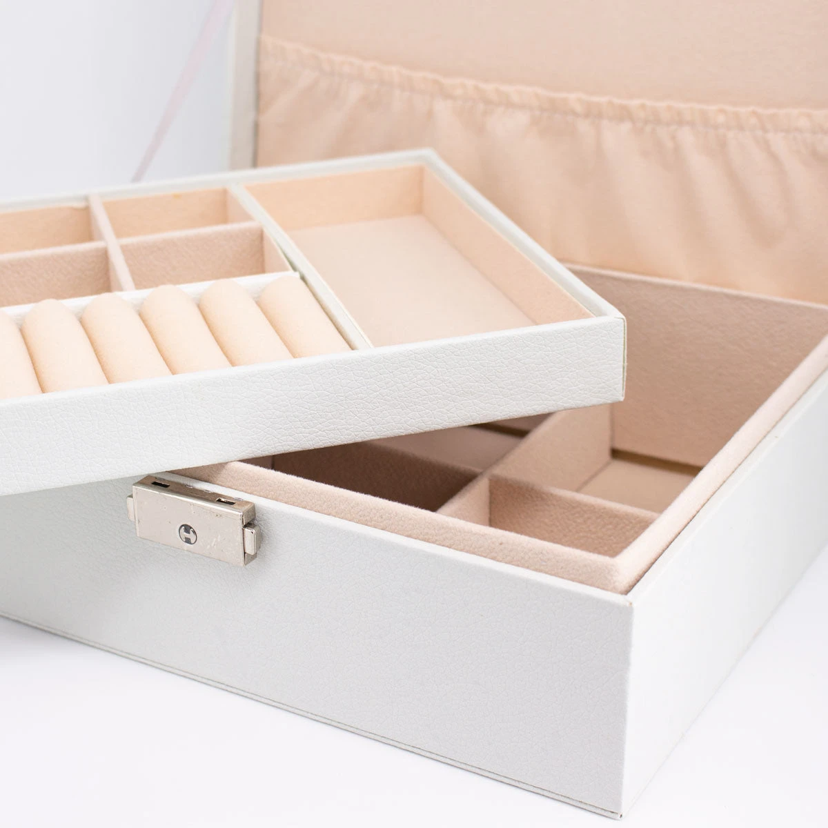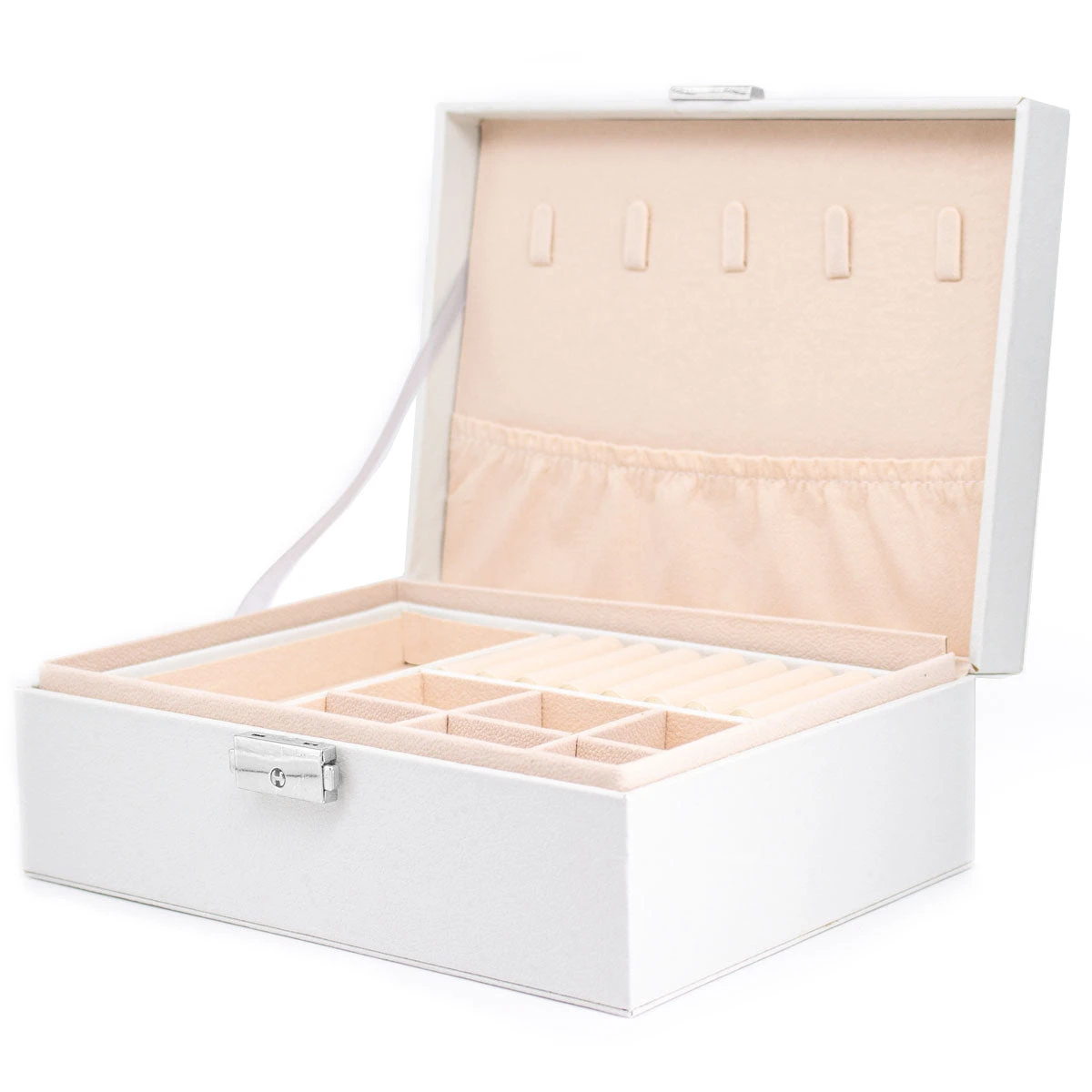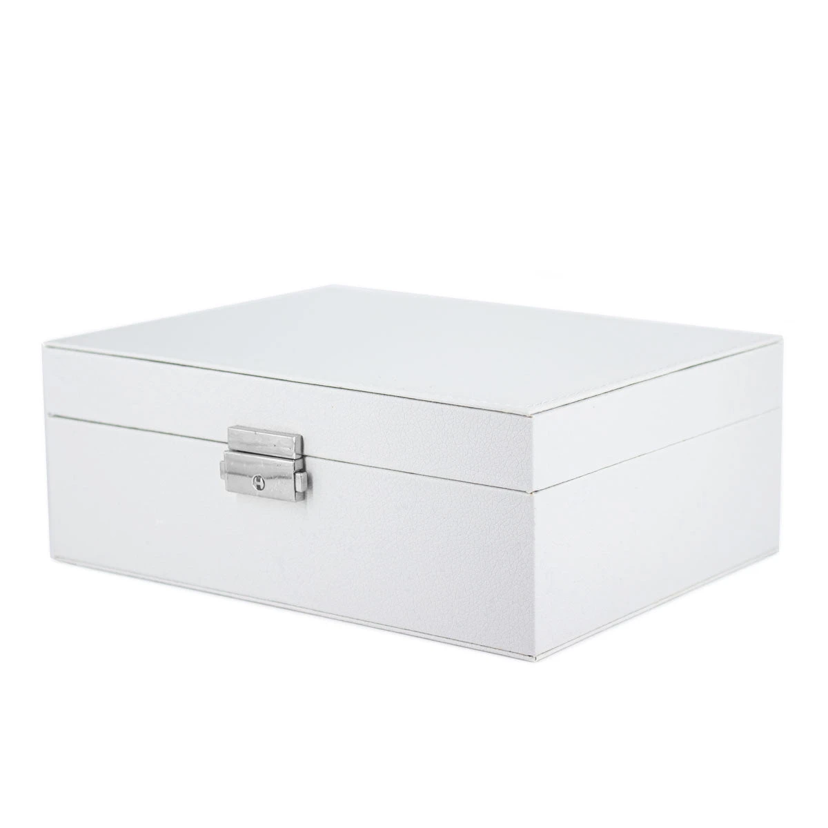 Nuestro Joyero maxi es un joyero con dos pisos que te ayudará a guardar tus Joyas de Alvent en perfecto estado, incluso te lo puedes llevar de viaje. Gracias a que es rígido y es un joyero de piel sintética blanca protegerá tus joyas y piezas de valor contra golpes y humedad.