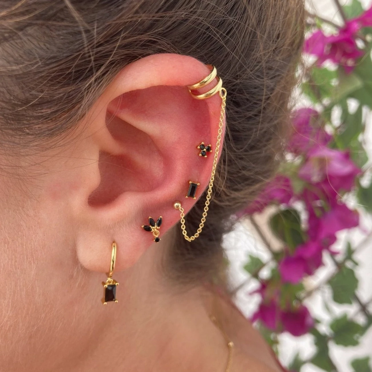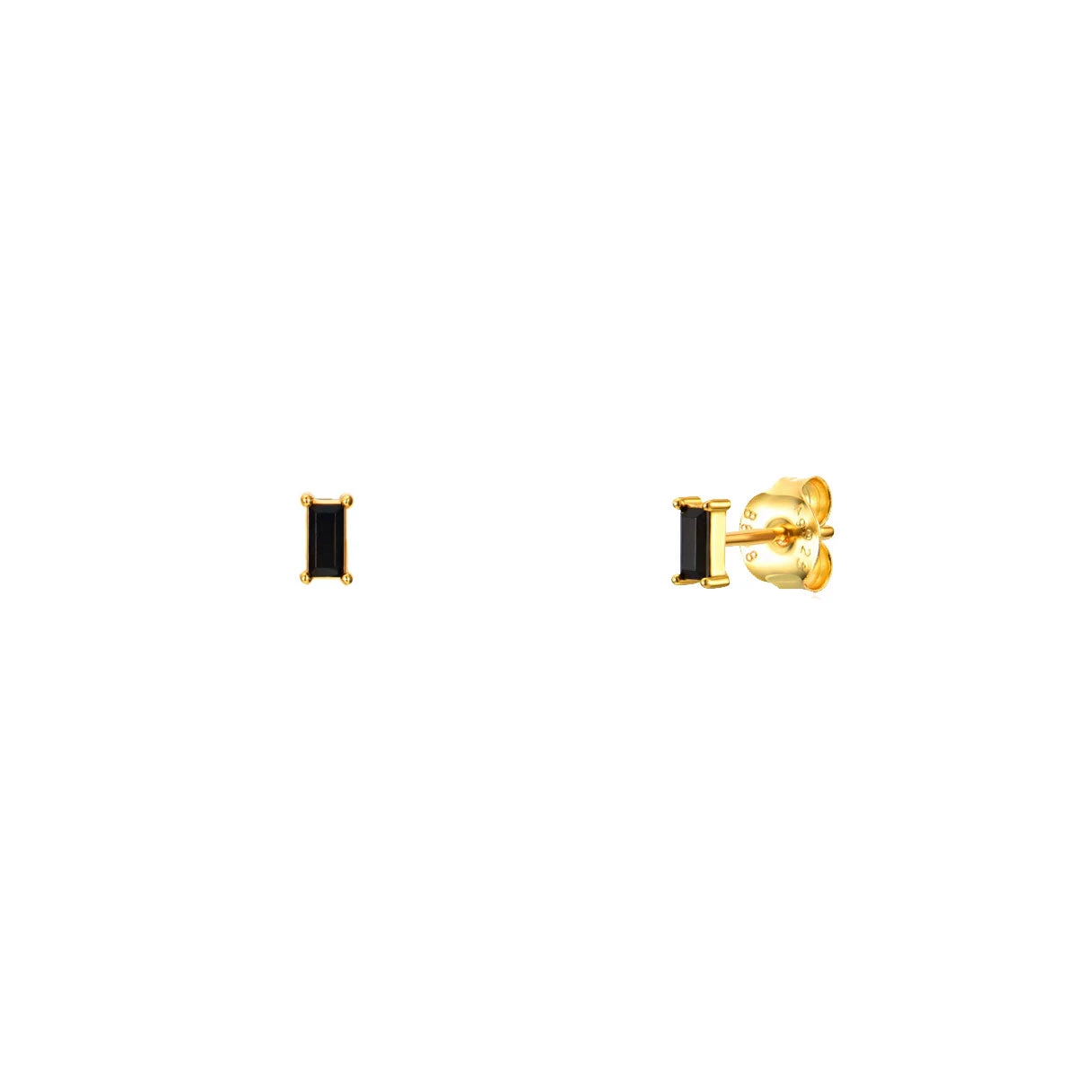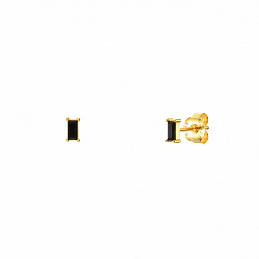 Pendientes pequeños con un rectángulo fucsia, lila, negro o blanco engastado.