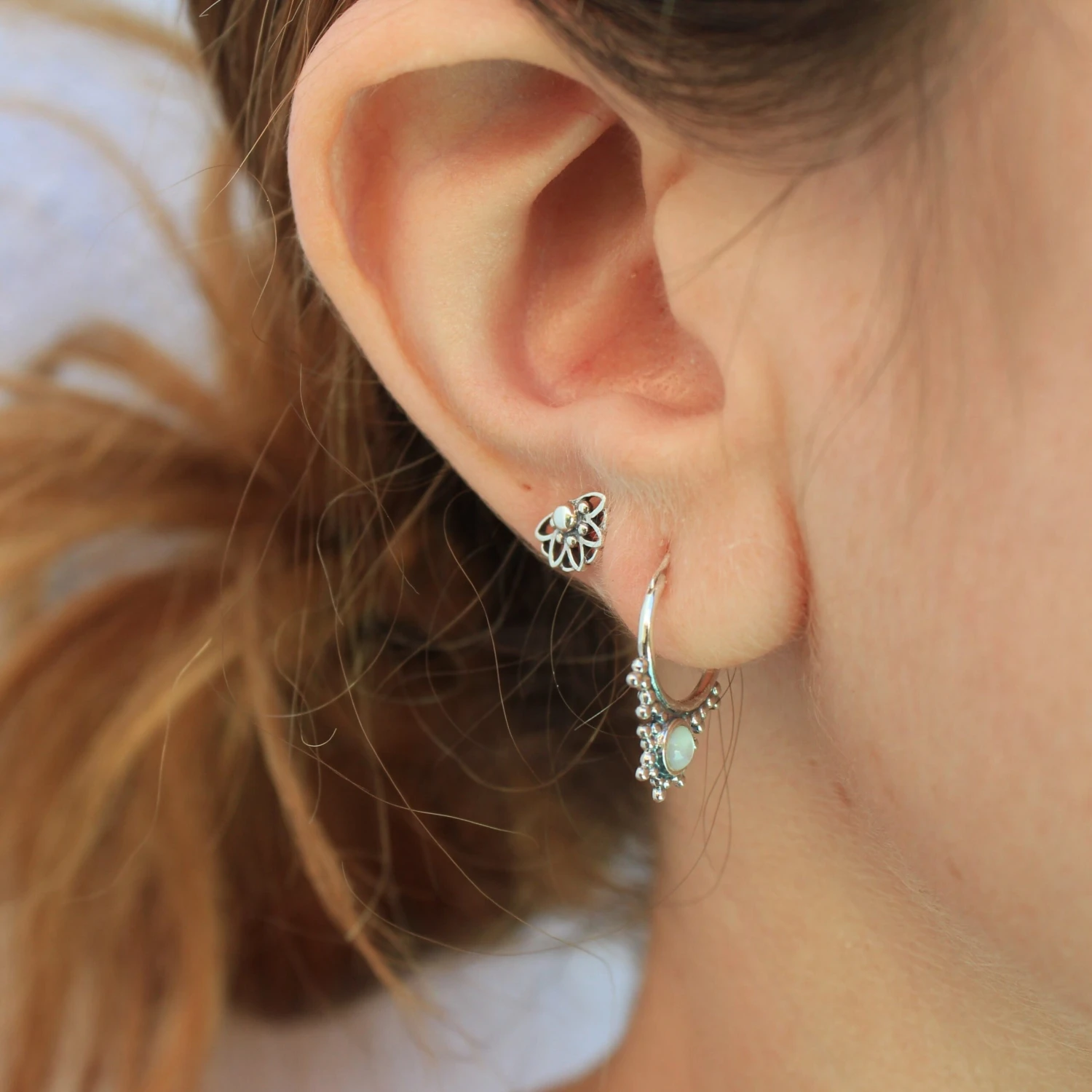 Pendientes fabricados en Plata925 hechos con un bonitovlabrado de Mandala. Te ofrecerá un acabado bohemio y te dará la luz perfecta a tus outfits. ¡No puedes equivocarte!
