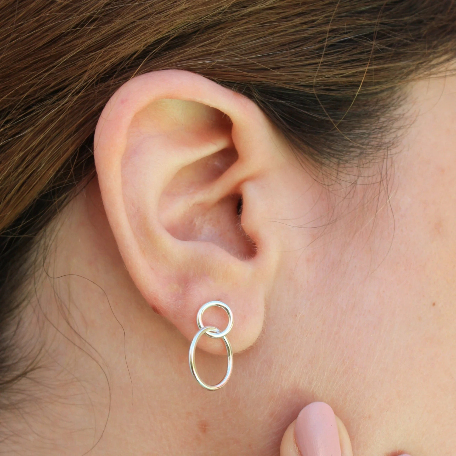 Estos pendientes son sencillos y elegantes, sus dos aros unidos no te dejarán indiferente, podrás llevar en tus orejas la elegancia hecha accesorio.