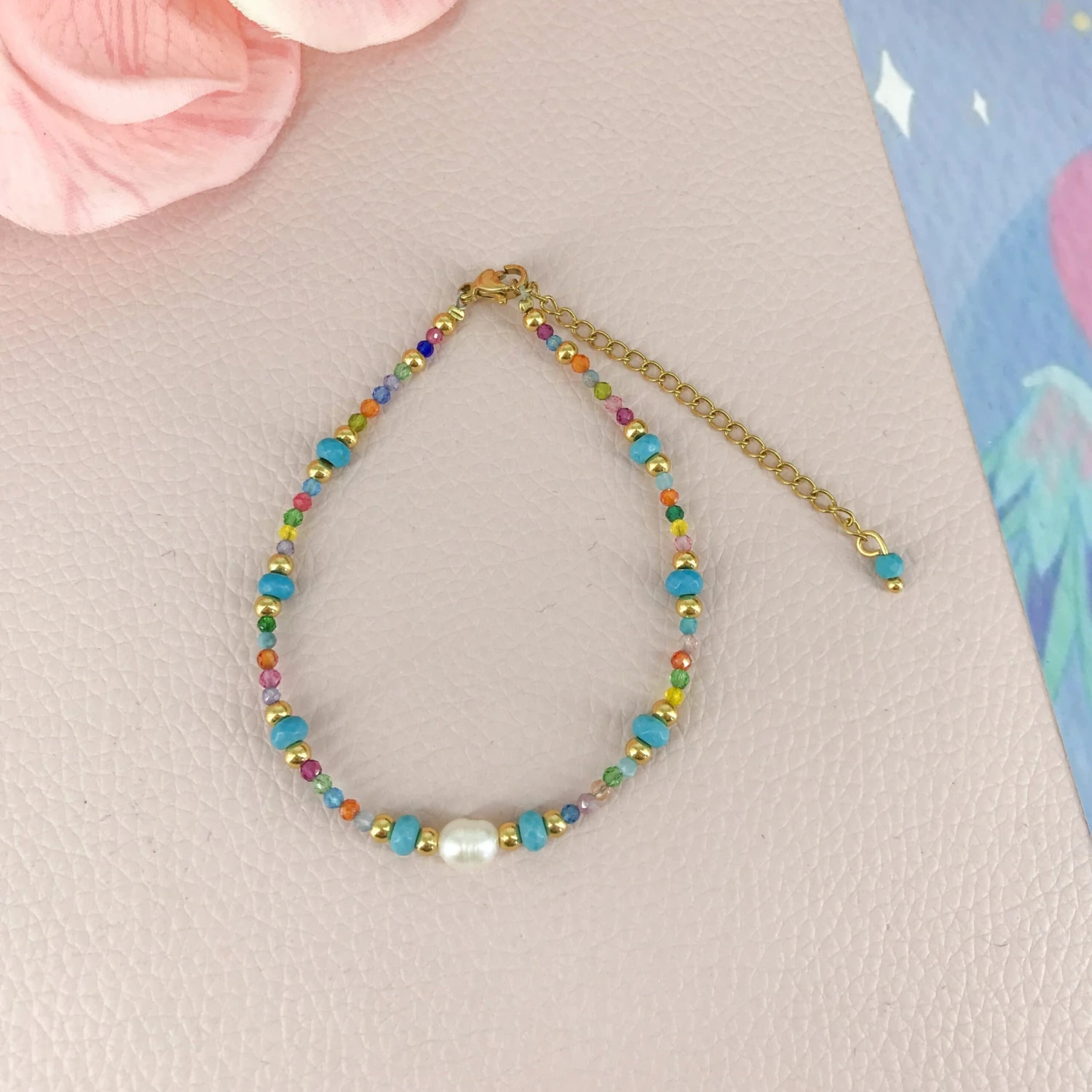 Pulsera hecha a mano, diseño exclusivo de AlVent, realizadas con piedras naturales, circonitas, ágatas… y Perlas Naturales.